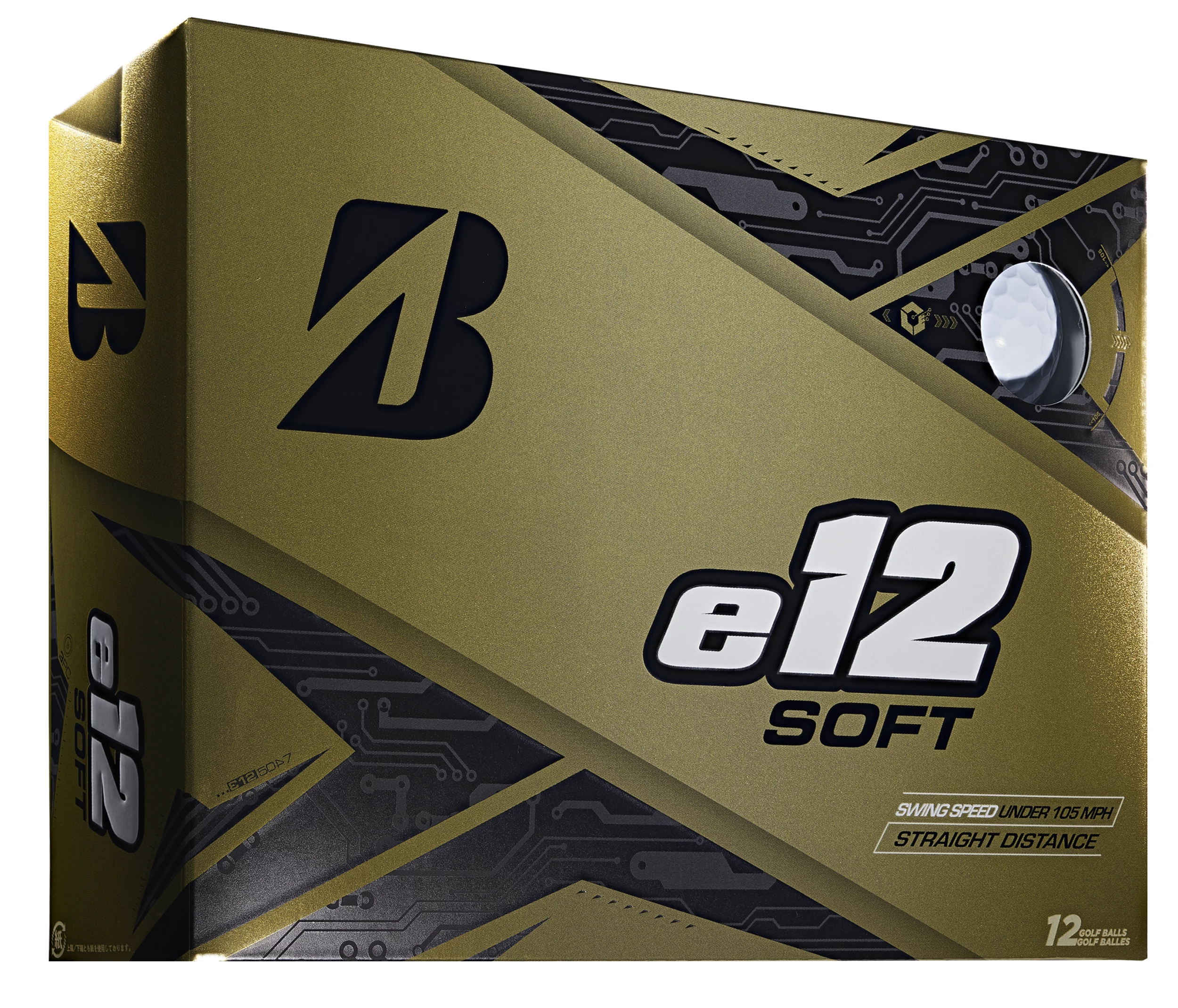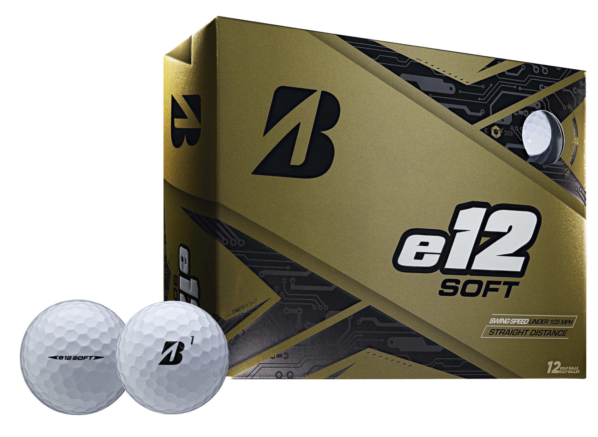 Distance Performance class, 3-piece surlyn golf ball that delivers sidespin reducing performance, with added distance off the tee with a softer feel. Bridgestone’s proprietary new Active Acceleration Mantle layer is a key component of the 3-piece construction. The Active Acceleration Mantle is comprised of a new High Performance Polymer material that provides increased thrust and higher initial velocity at impact, while allowing Bridgestone to soften the core for greater forgiveness and enhanced feel. Designed specifically for players with less than 105 MPH driver swing speeds. The e12 SOFT utilizes Bridgestone’s Delta Wing Dimple pattern for less drag and optimized aerodynamics in the cover. Available in White, Matte Green, Matte Red and Matte Yellow.