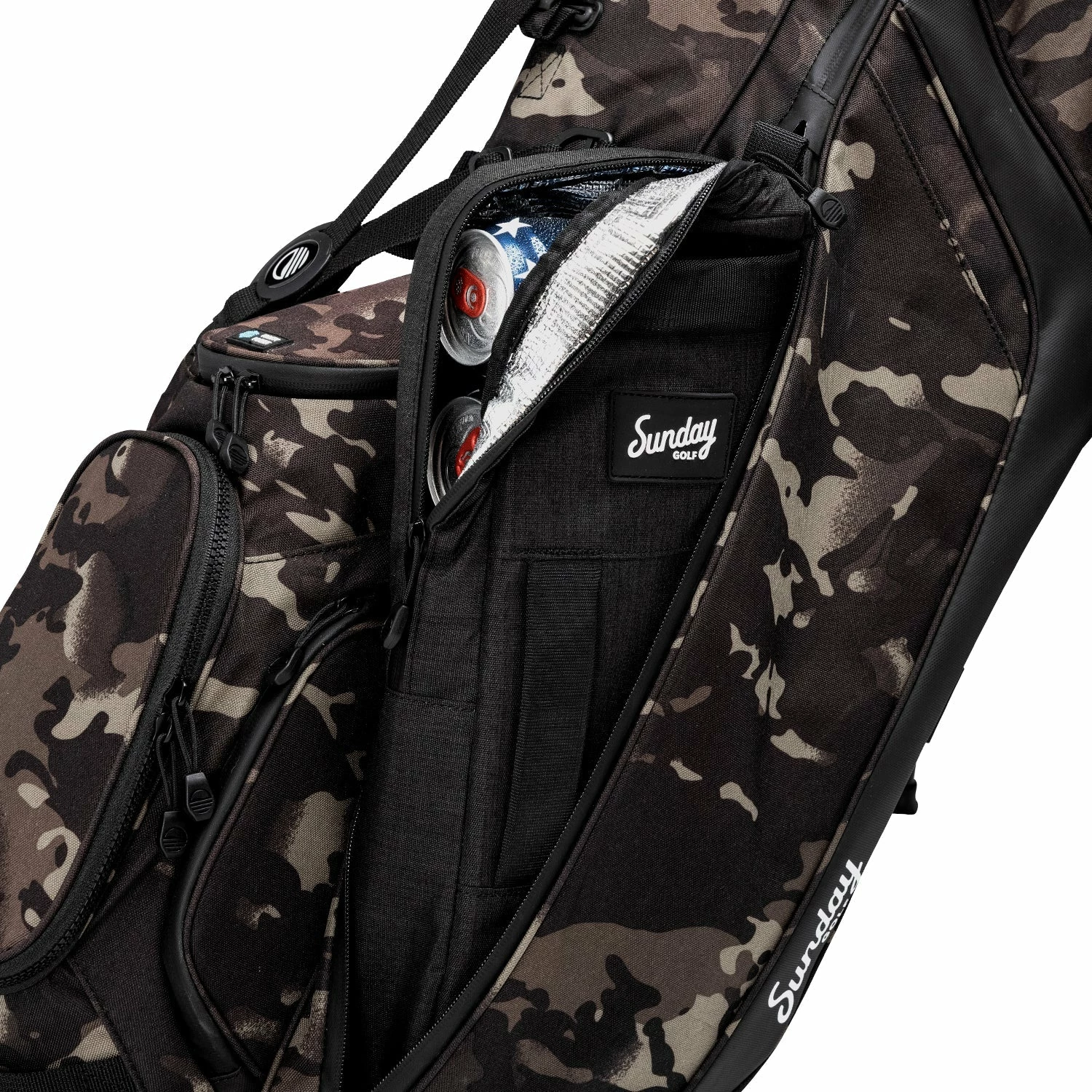 – Our signature, high-class, and splendid Big Frosty golf bag cooler can magnificently contain up to seven cans of your preferred swing oil and keeps them ice cold the whole round with the lap of luxury.